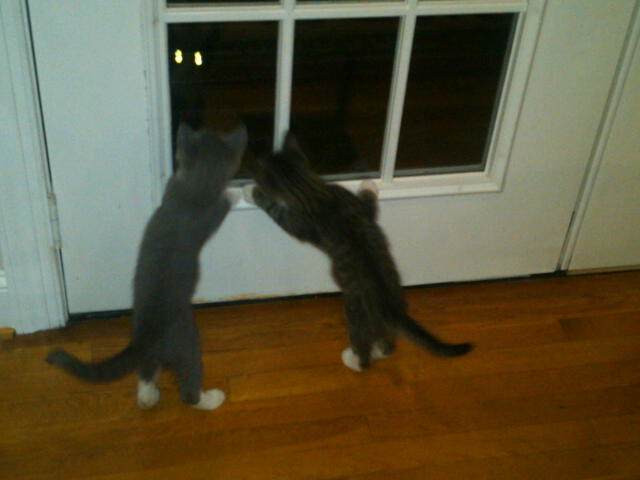 Time passed. The kittens grew and one day we noticed that genitalia had dropped on BOTH cats. My darling Sweetie Pie is a boy.