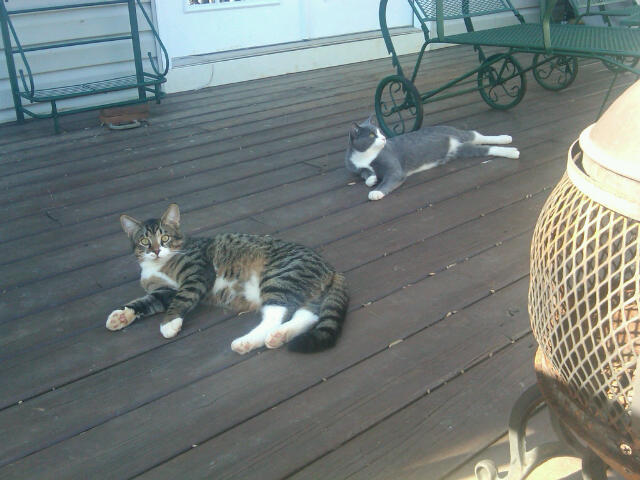 Yesterday, this pair of cats brought me a gift: a vole! As if they knew it would please me, they brought it to the deck and laid it at the door. Good kitties!