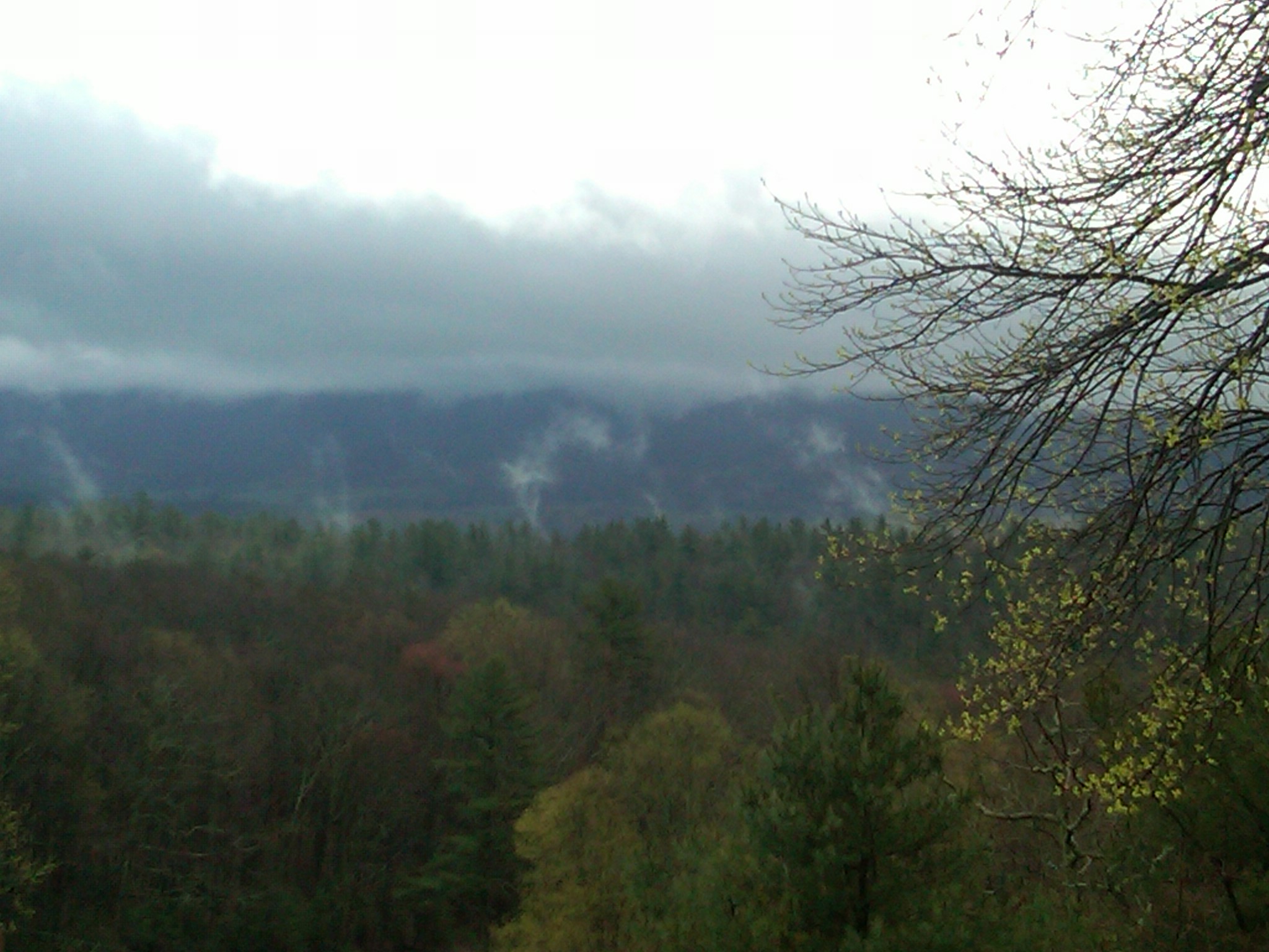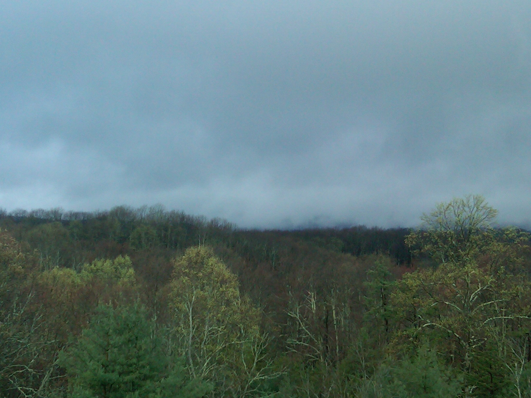 Even a storm emotes beauty here in The Jefferson National Forest. The wind that tore through the valley of Bland, Virginia – which sits like a child snuggled up in the lap of the surrounding ridges – also blew the storm away. And now wisps of mist and fog rise up as if the mountain Trolls are smoking their pipes. An ever changing landscape.