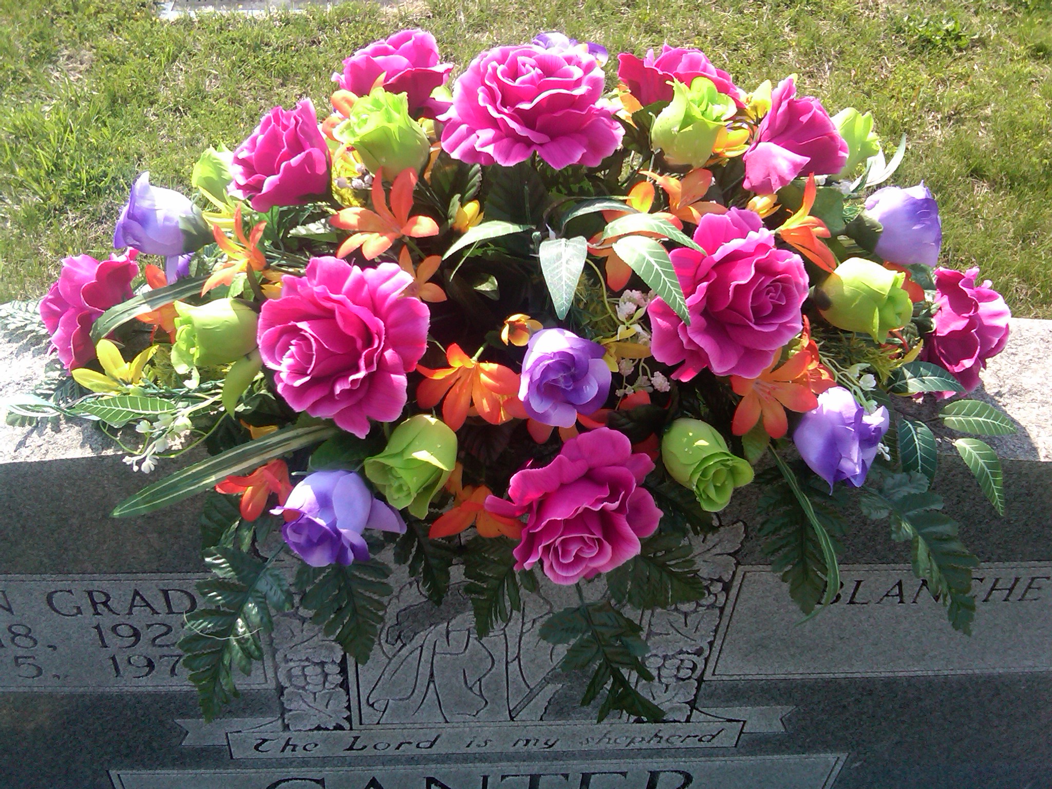 At one church, I put flowers in the vases of my paternal grandparents and my aunt. At another I put saddle wreaths on top of the stone markers for my father and my maternal grandparents. It is a ritual for me, like waving the palms on Palm Sunday. Some people say that this is a waste of money – that they are not there. Of course they are not there, but I am. I can do this one small act that says they are not forgotten, that adds beauty to the cold grey stones in an otherwise gloomy piece of land, and that will add cheer to the celebration that is – A Risen Christ.