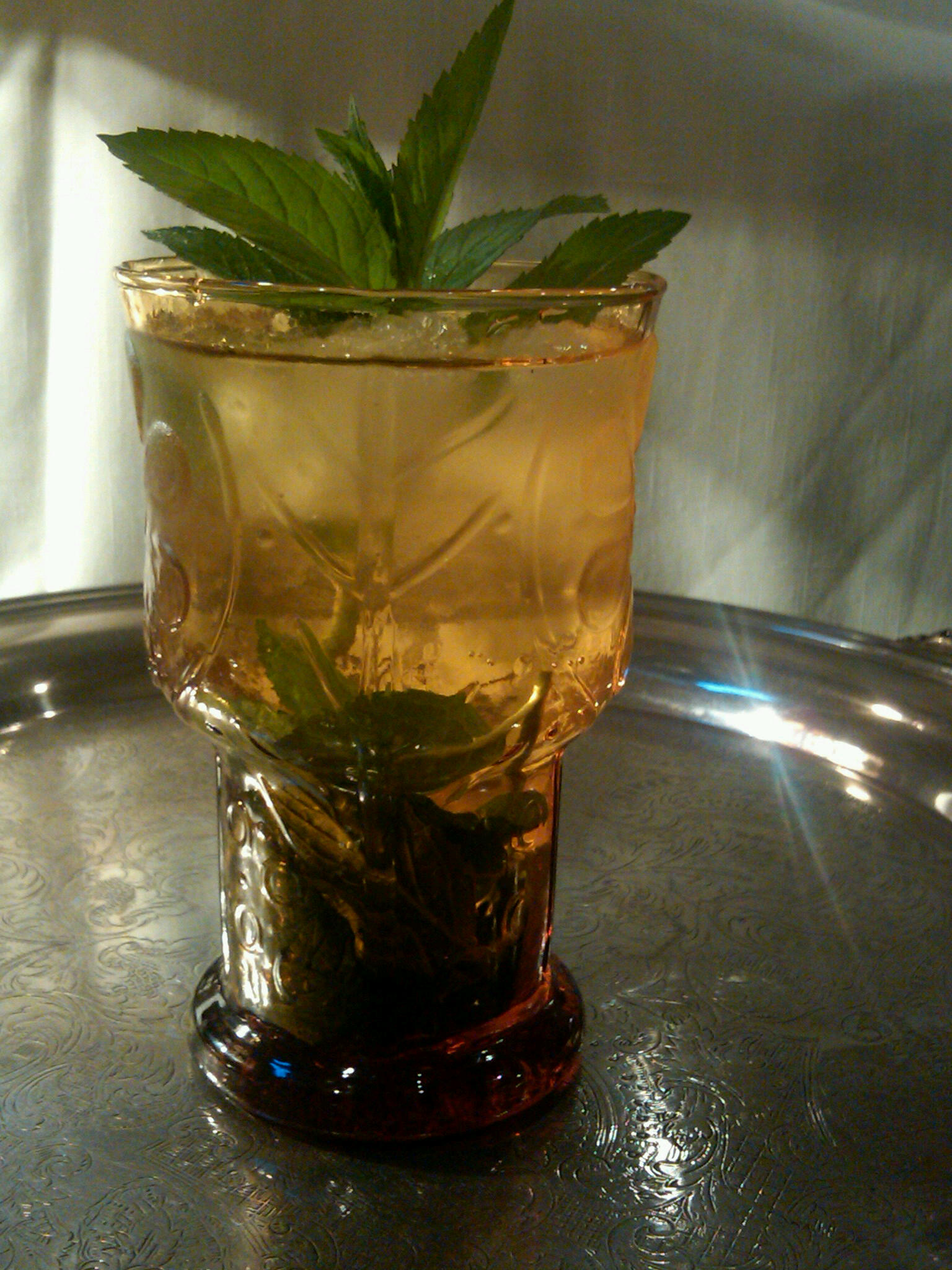 This bourbon was soon used to make mint juleps and now it is the traditional beverage of the Kentucky Derby. You can find all kinds of complicated recipes for this drink, but keep it simple.