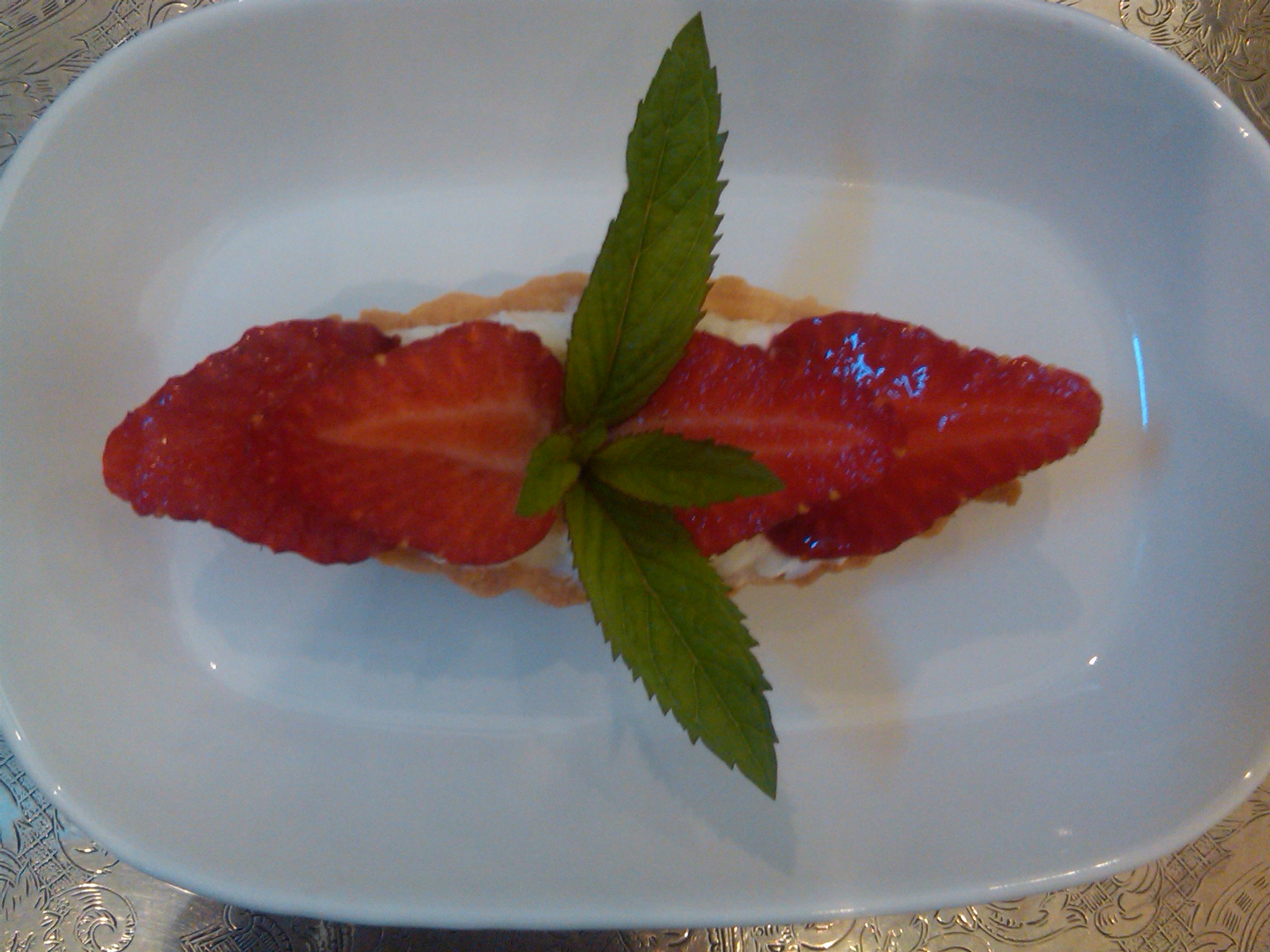 Right before serving spread mixture into tart shells and top with your choice of fresh fruits. I like strawberry, kiwi, pineapple, blueberry and raspberry. Garnish with fresh mint and serve to the ooks and aahs of your guests.
