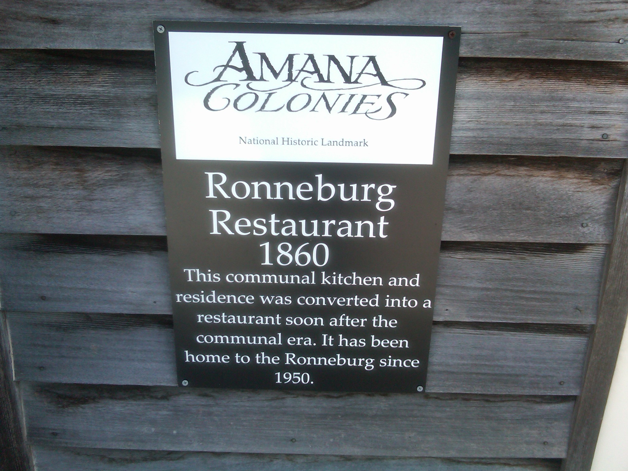 Thousands of acres of corn and soybeans later, gorgeously waving tassels or leaves underneath a spectacular sky of banked clouds or fluffy cotton-ball dollops, we stopped for gas and a sandwich and wound up in Amana Colonies!