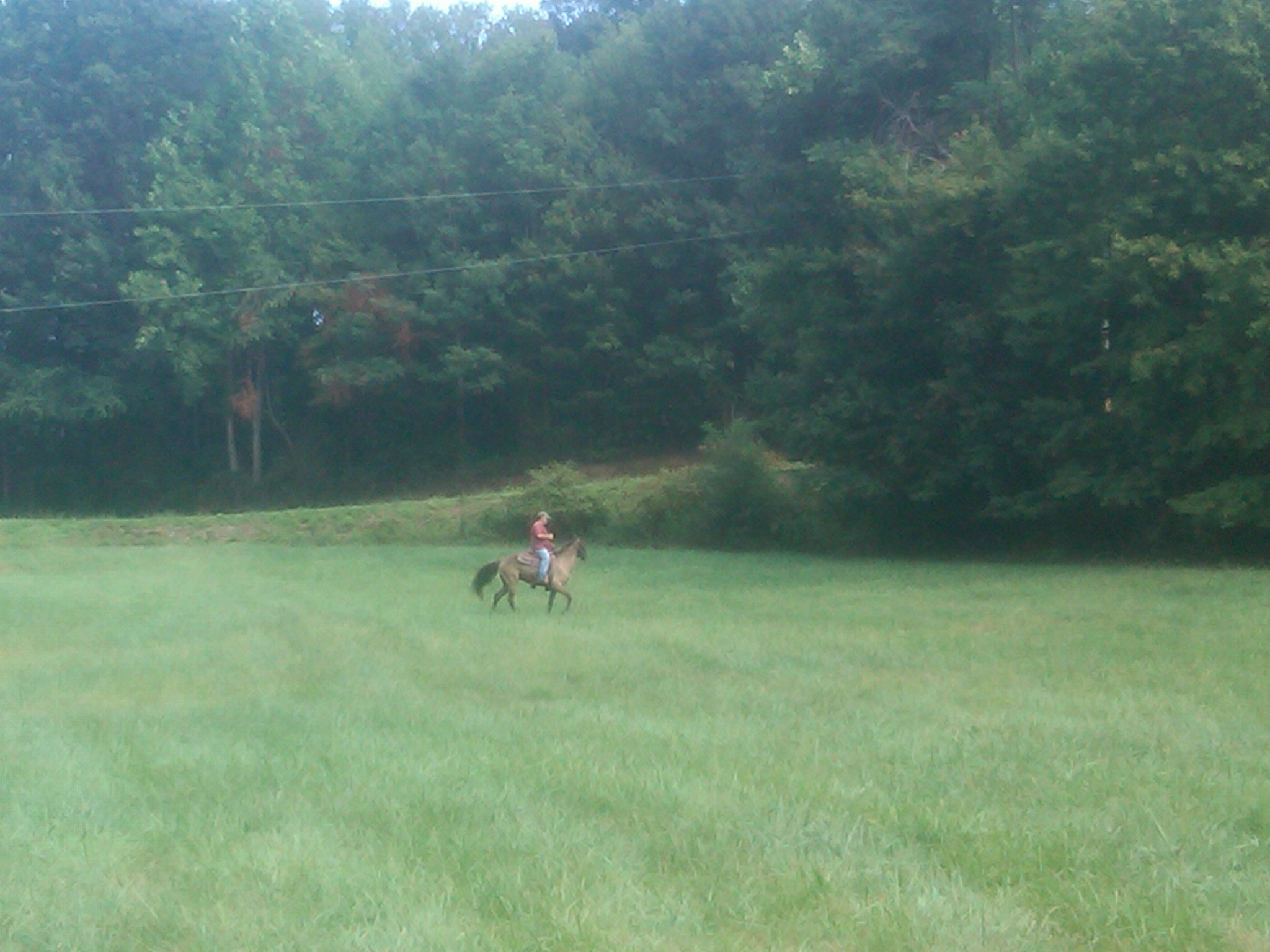 Caleb and I caught Choco, fixed the reins differently, and Tony saw something else he didn’t like about the gear. When everything was adjusted to suit him, he did what everyone knows must be done, but probably doesn’t want to do. He got right back in the saddle and took off across the field.