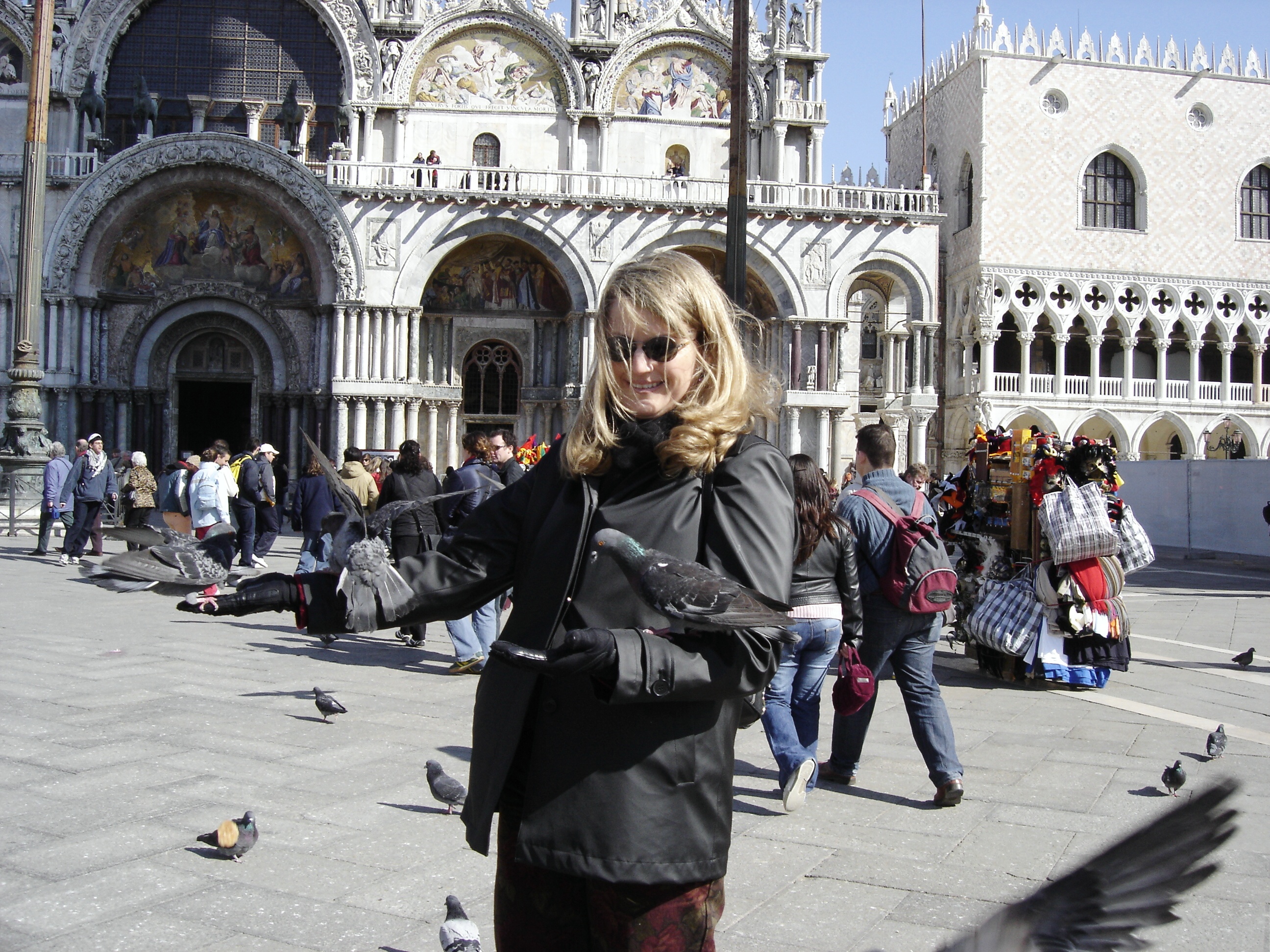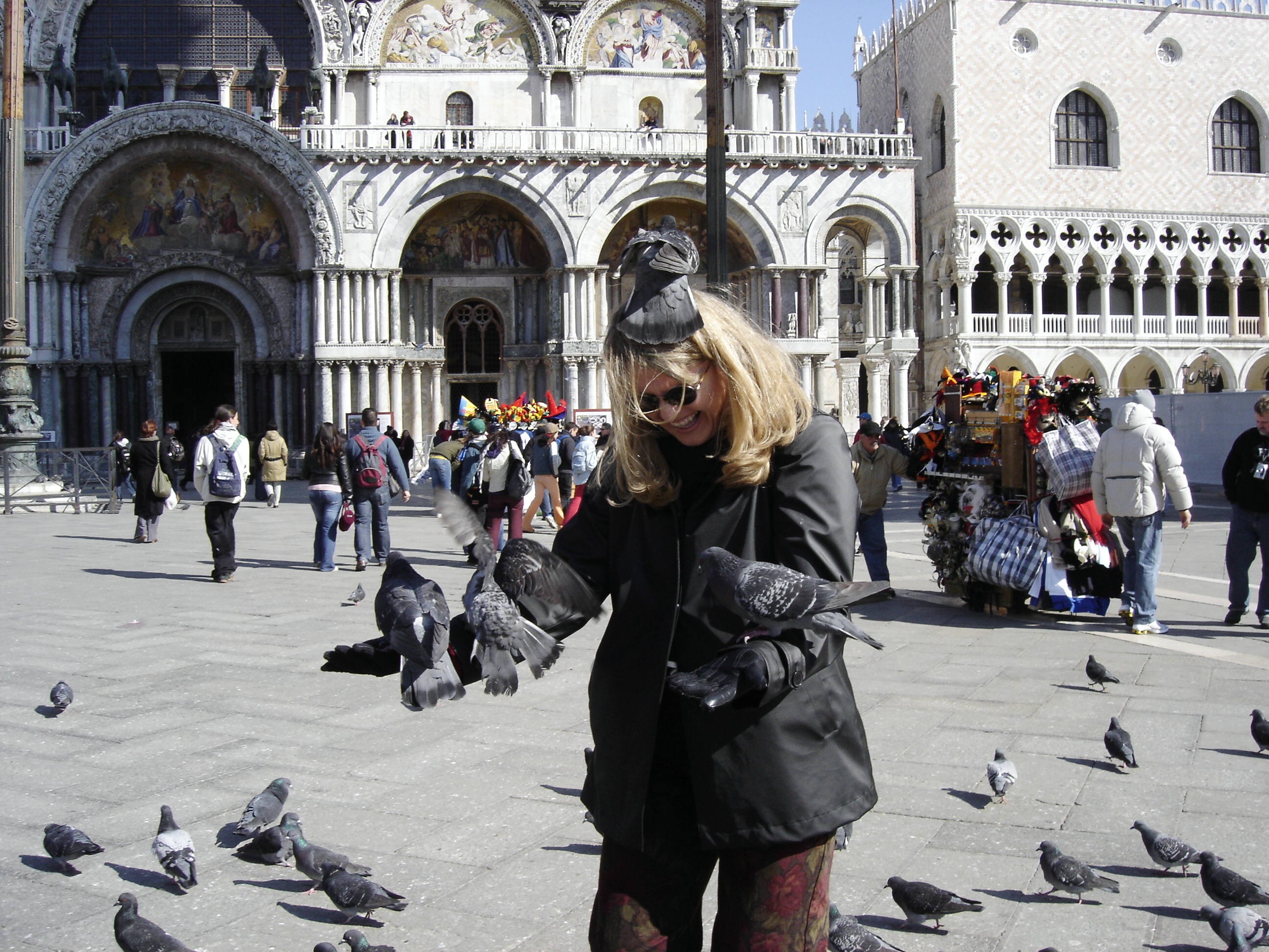 Love the picture story of you and the pigeons!…and the gondolier. My German cousin adores Venice and tells me I must visit it some day. I hope to do that!