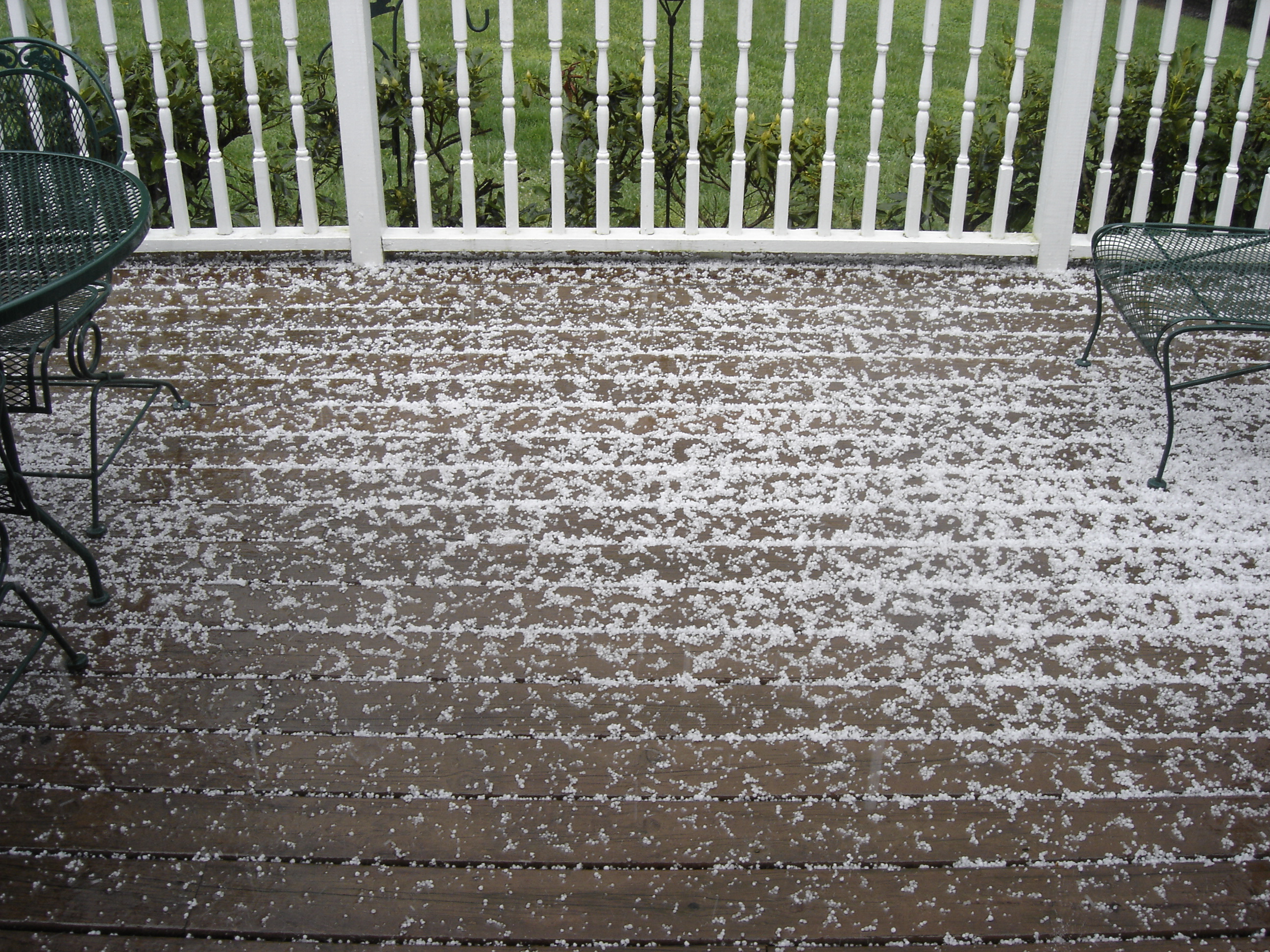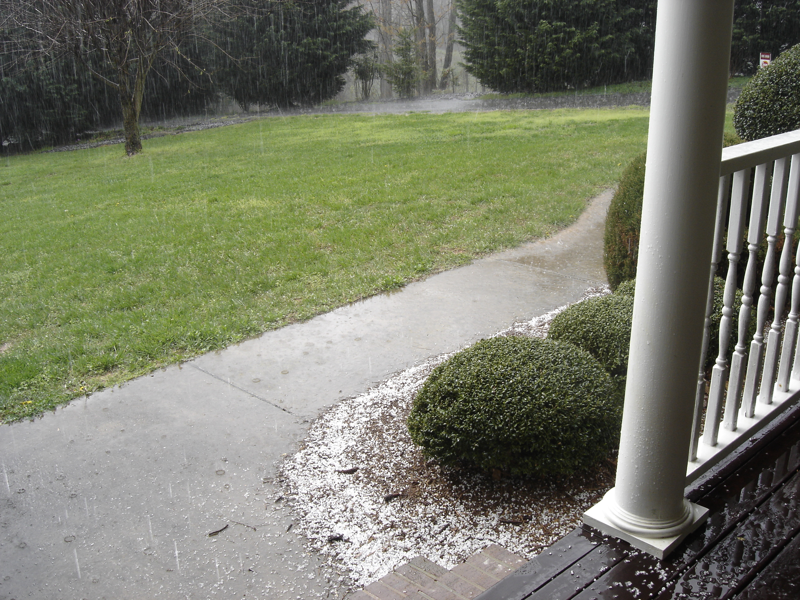 My husband stood at the door and looked out at the pea sized ice balls with his arms crossed over his chest.