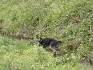 Gretel has discovered water sports and it has been giving her much joy. We get enormous pleasure just watching her test herself in the side creek and then run into the reeds in the shallow water.