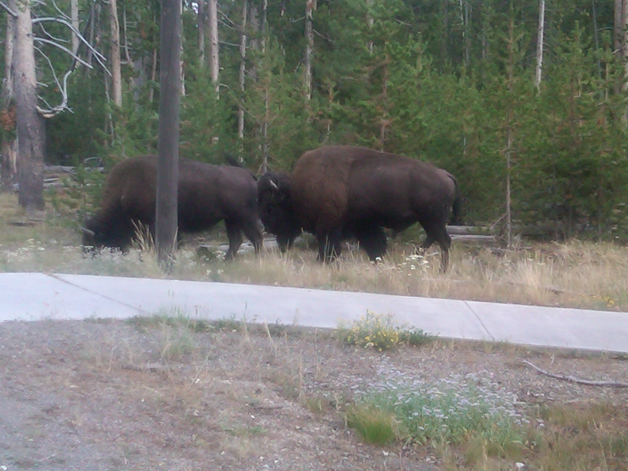 Yellowstone covers more than 3400 square miles. It has lakes, rivers, canyons, mountain ranges, forests, grasslands and geothermal features. It also has a free ranging population of bison, elk, grissly bears, wolves, mule deer, pronghorns, moose, and a vast array of birds.