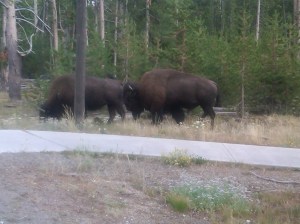 Sometimes the bison cause traffic backups because they will cross the road and just stand there – for hours!