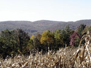 My son comes by on the four-wheeler, checking the corn. It has been drying on the stalk and is ready for harvest. Right now it is too thick to walk through. Caleb warns me that the bobcat he saw on more than one occasion has been passing in and out of the corn field. He is worried that Gretel might confront it if it peeked out at us, so we continued to the pond.