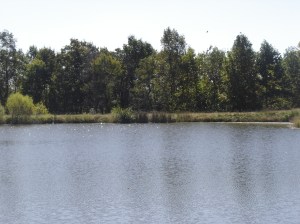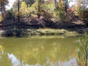 The back side of the pond is mostly just evergreens. But the surround is beautifully tiered with maples, oaks, poplars and various other deciduous trees. Their coloration reflects in the pond.