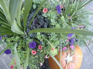 Once upon a time – say a very few days ago – this pumpkin had the most glorious stalk. I wish I had photographed it then. Her highness – Gretel – decided to play with it and carried it off by afore mentioned stalk. I suppose it made a great handle for a little while. We followed the shreds to the forest, where her teeth slid through the stalk time and again as the weight of the pumpkin pulled it downward. Oh well, at least she had a little fun with it.