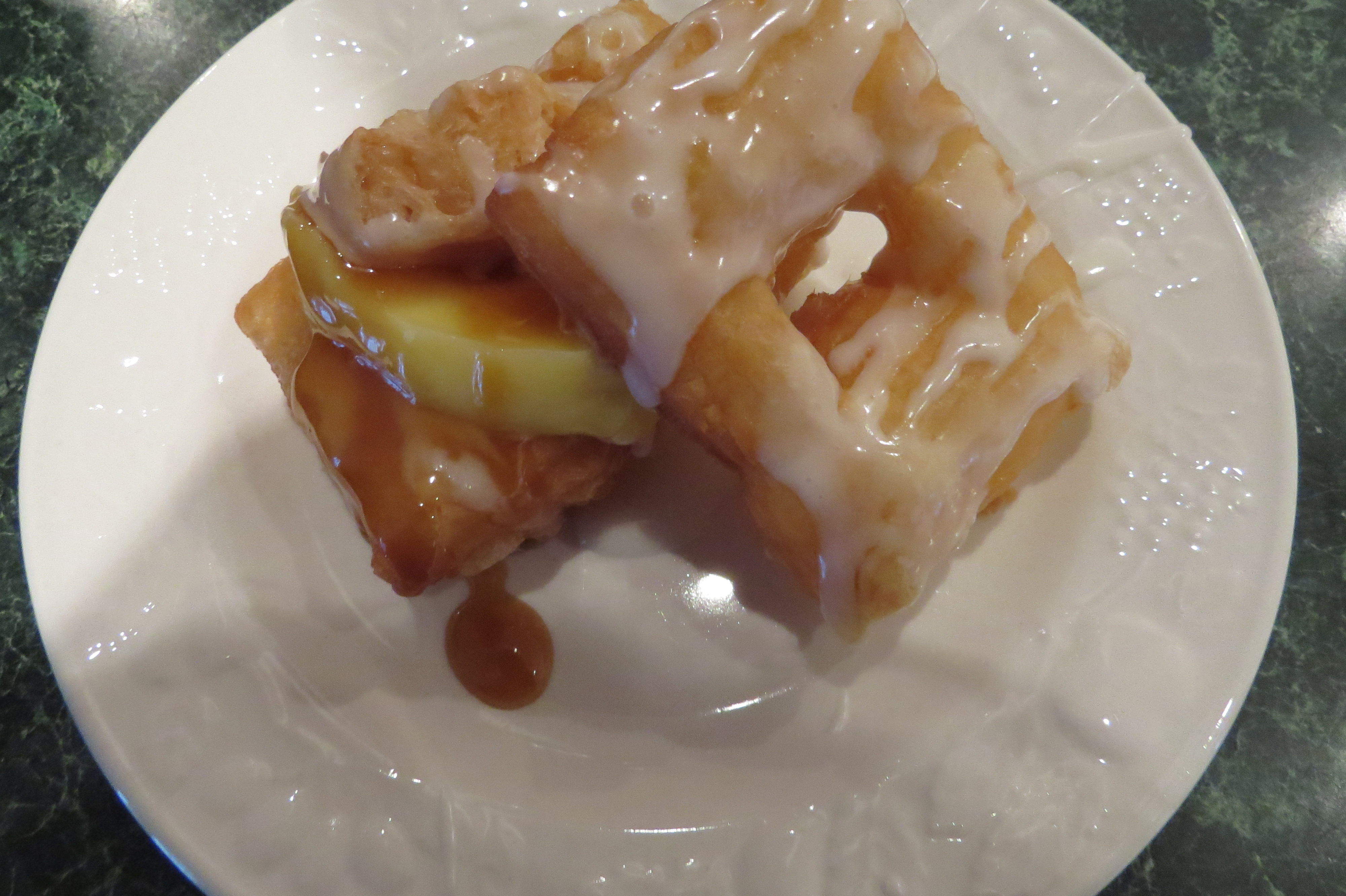 This was my attempt at making the cross between a croissant and a donut, complete with custard, and a fresh apricot and pineapple upside down cake.