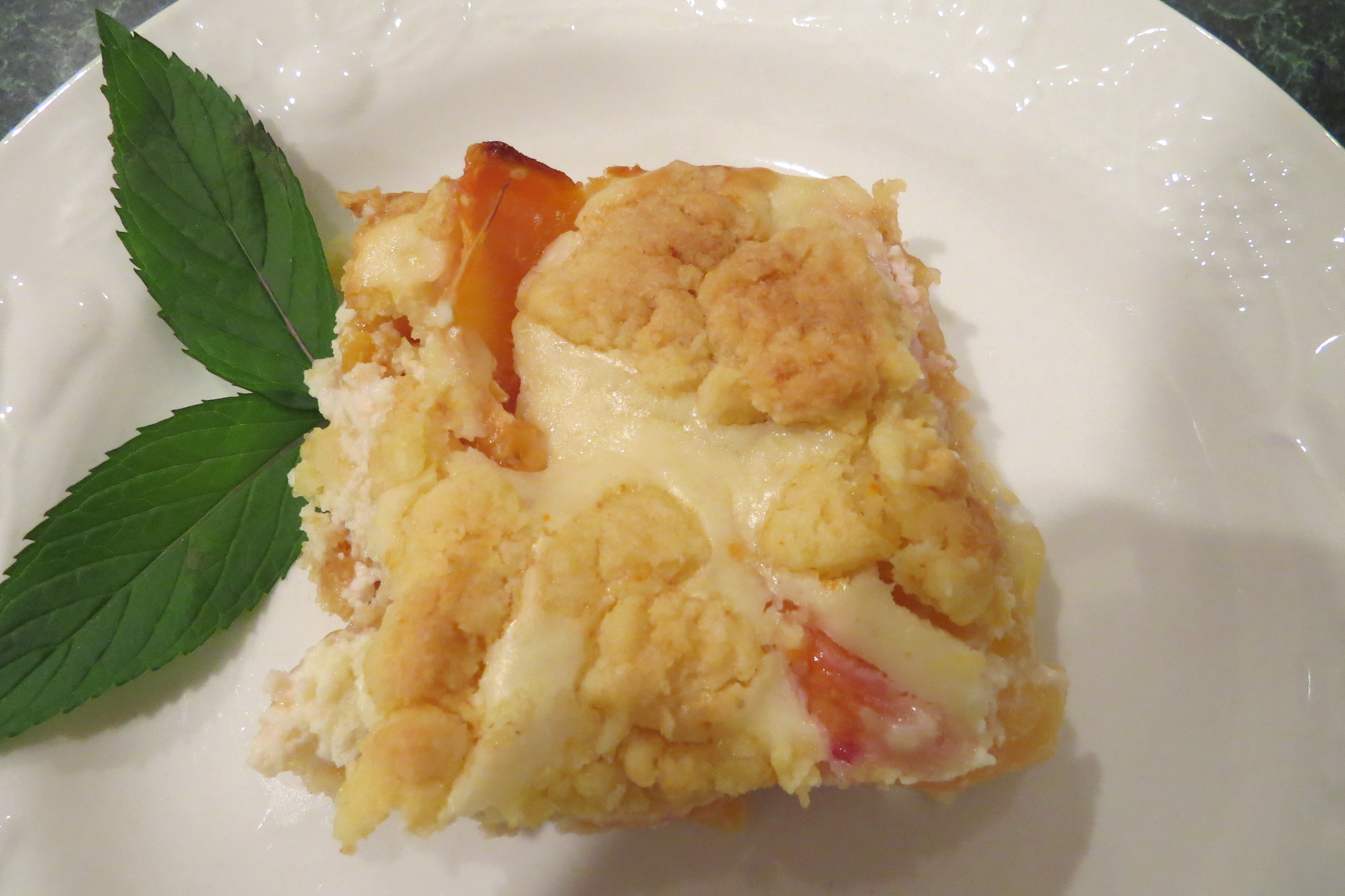 Fresh peaches were delicious alone, or baked in a ‘Peaches and Cream Bar’. Another hit.