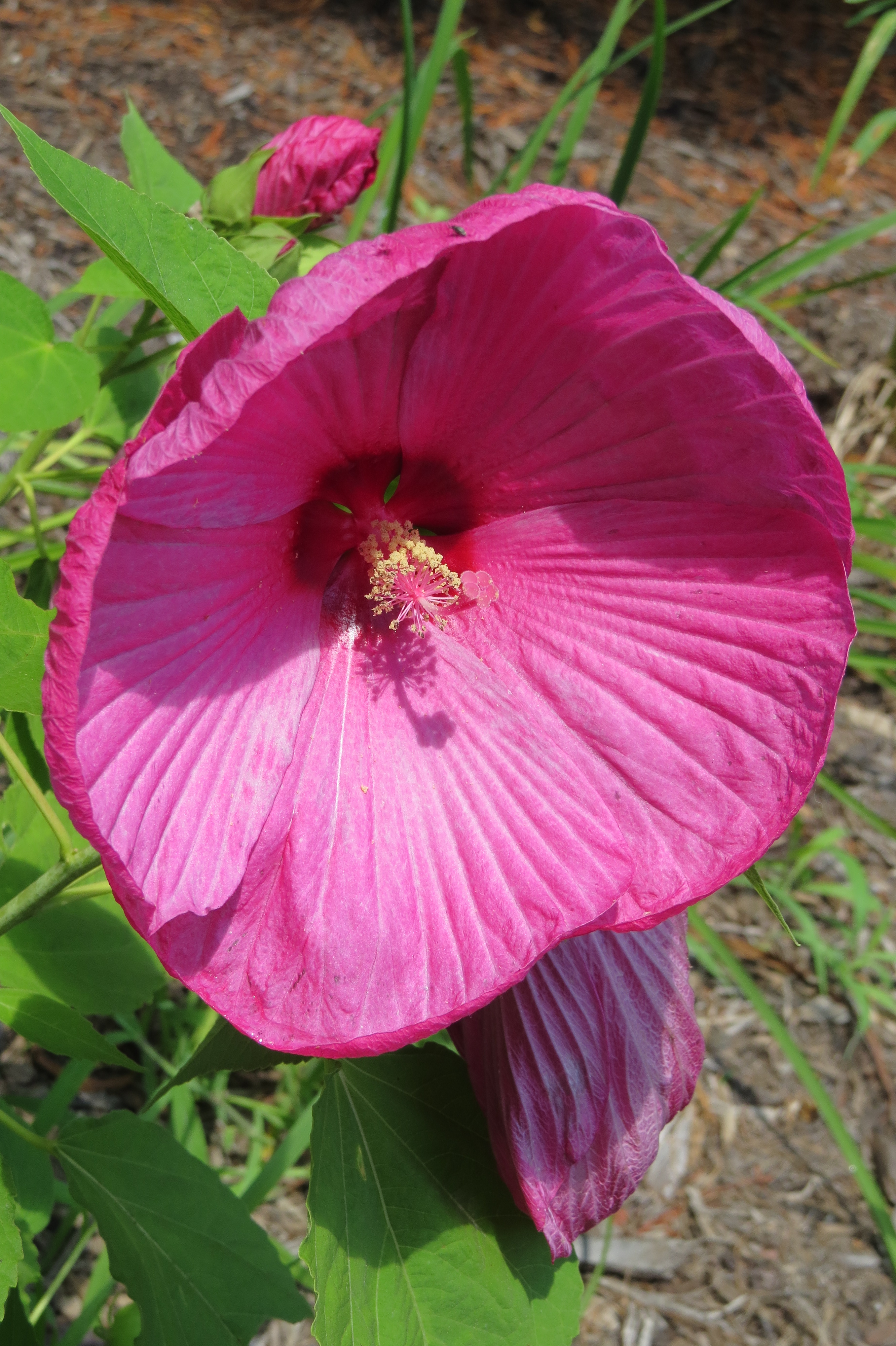 Jesse James joined Choco and MJ in the pasture and this showy hibiscus came up by itself inside of a cutting I took from my grandmother’s flowering quince shrub.