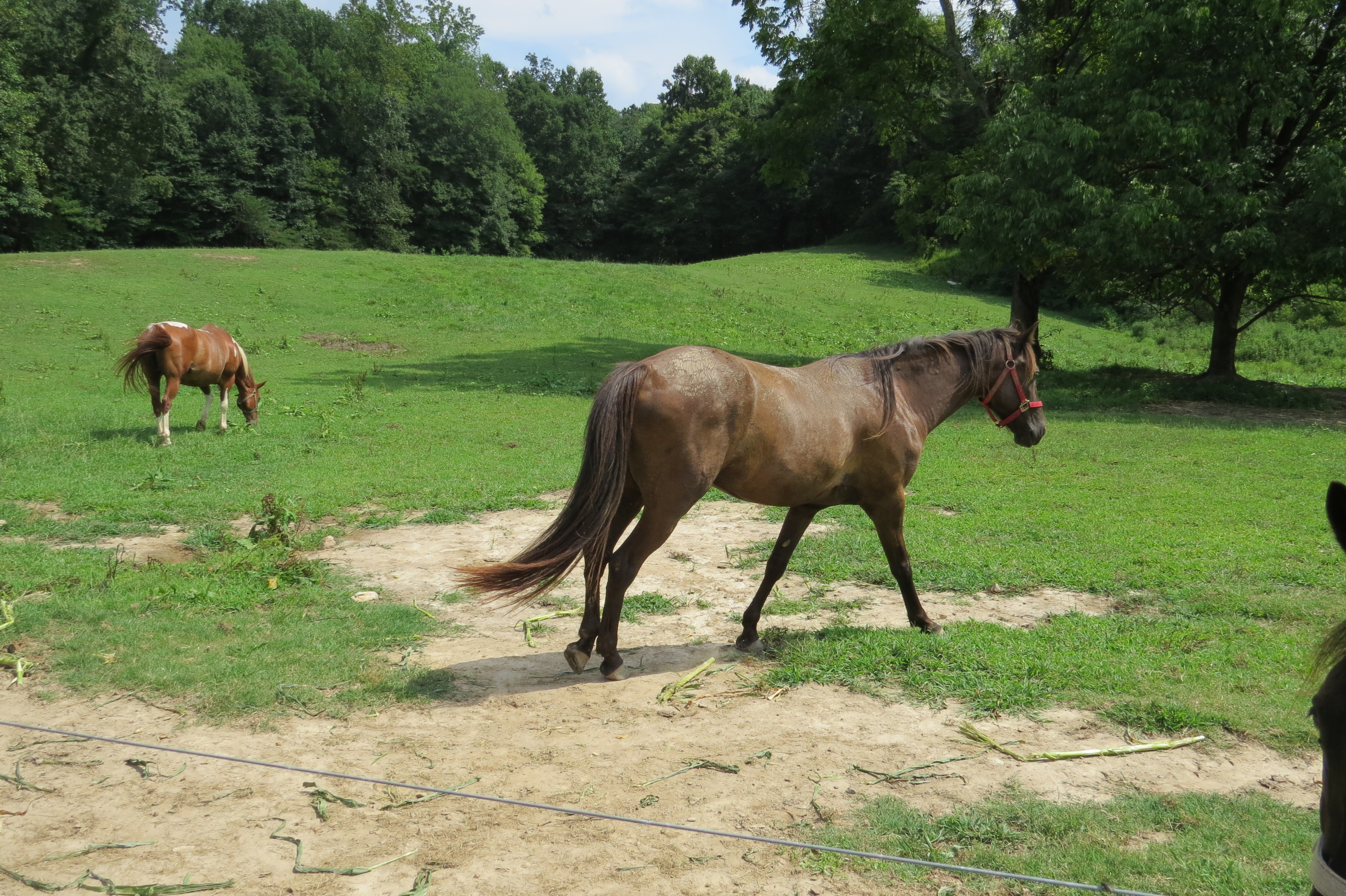 How’s your husband doing these days….besides sweetly? That thing in the air? If it has a tiny motor, I think it’s called an Ultra Lite. No motor? Probably it’s a hang glider. Great moon shot. I’m, of course, drawn to the critters, the horses and the dog. Well…the sweets, too. I can’t believe summer is already drawing to a close.