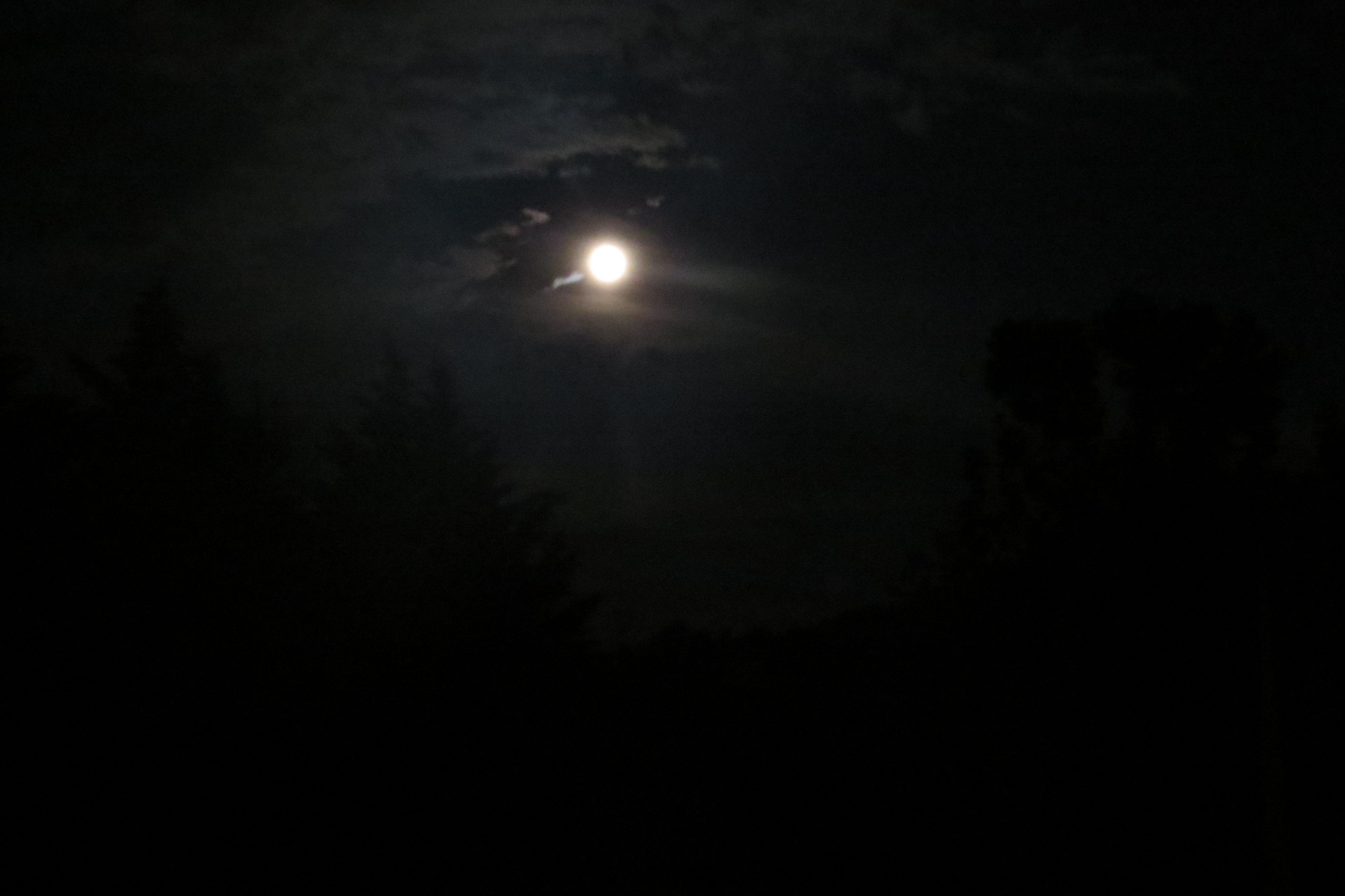 The supermoon was a curiosity. If you look closer at the smaller version you can make out the clouds and the tops of the trees – spooky.