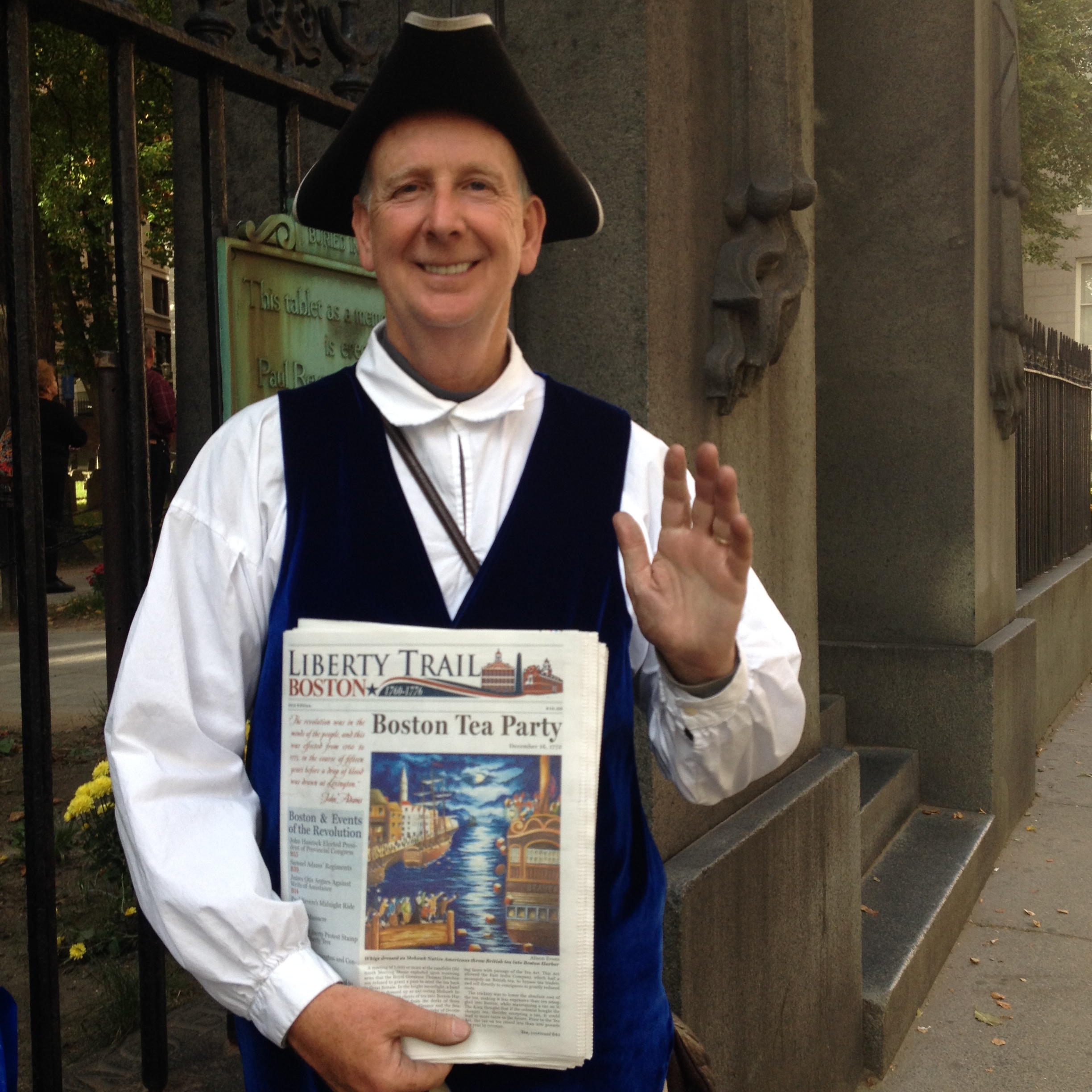 Tour guides dress in colonial costumes and if you buy a paper from Gary, he’ll pose nicely for you! Thanks Gary!