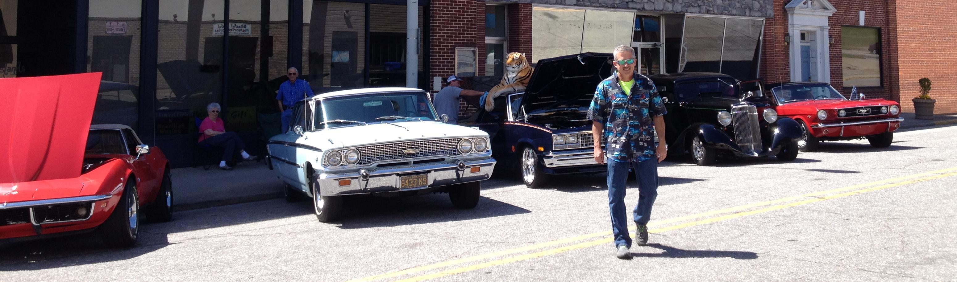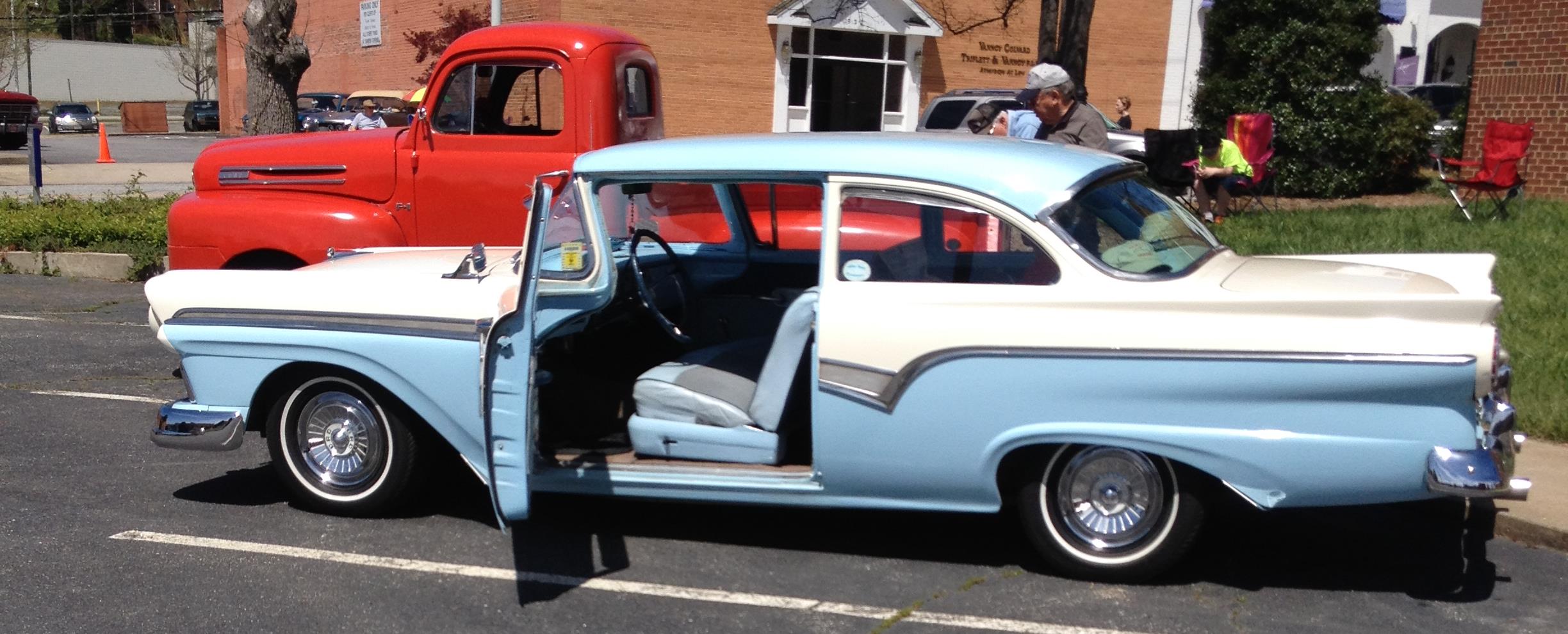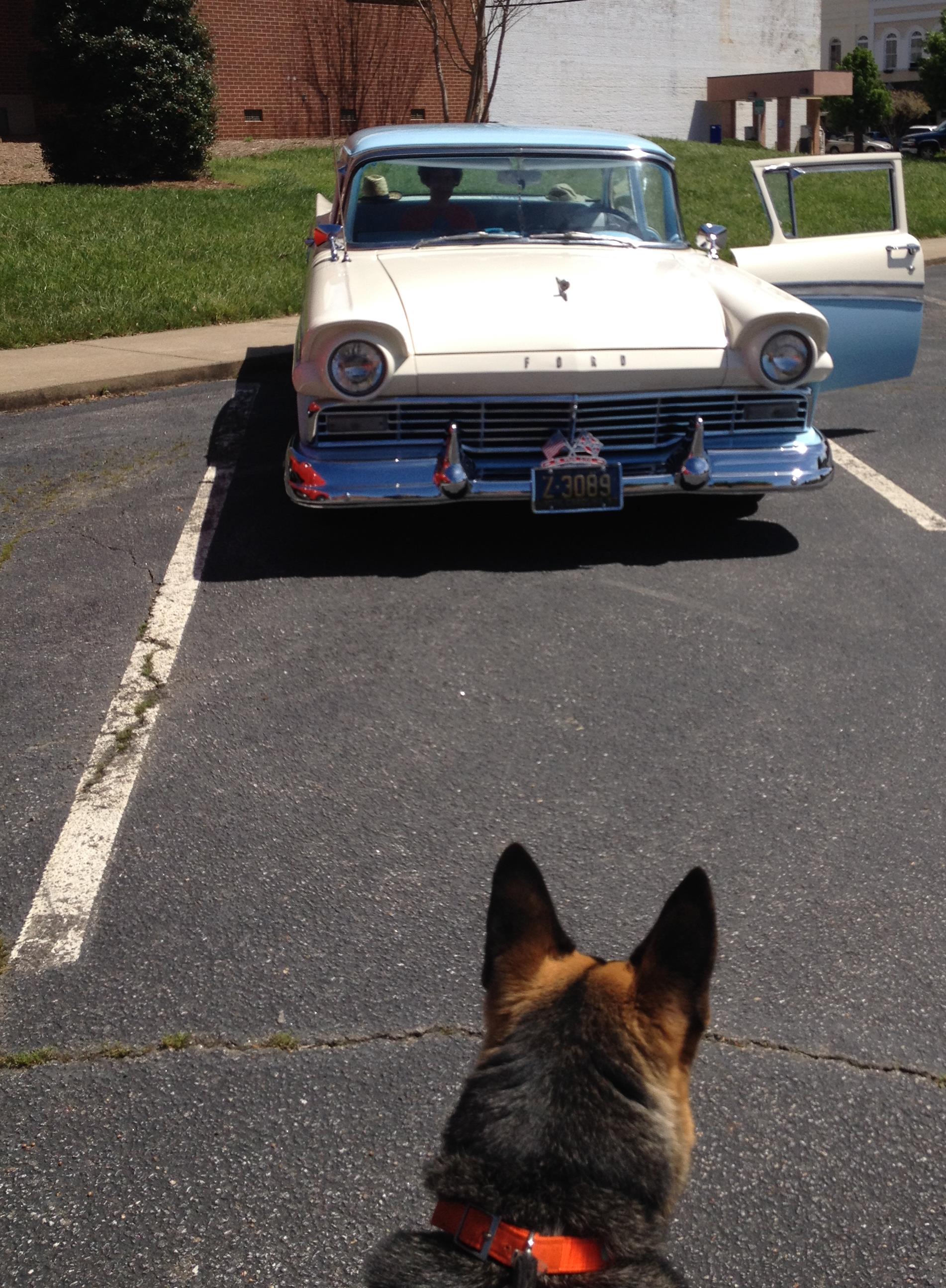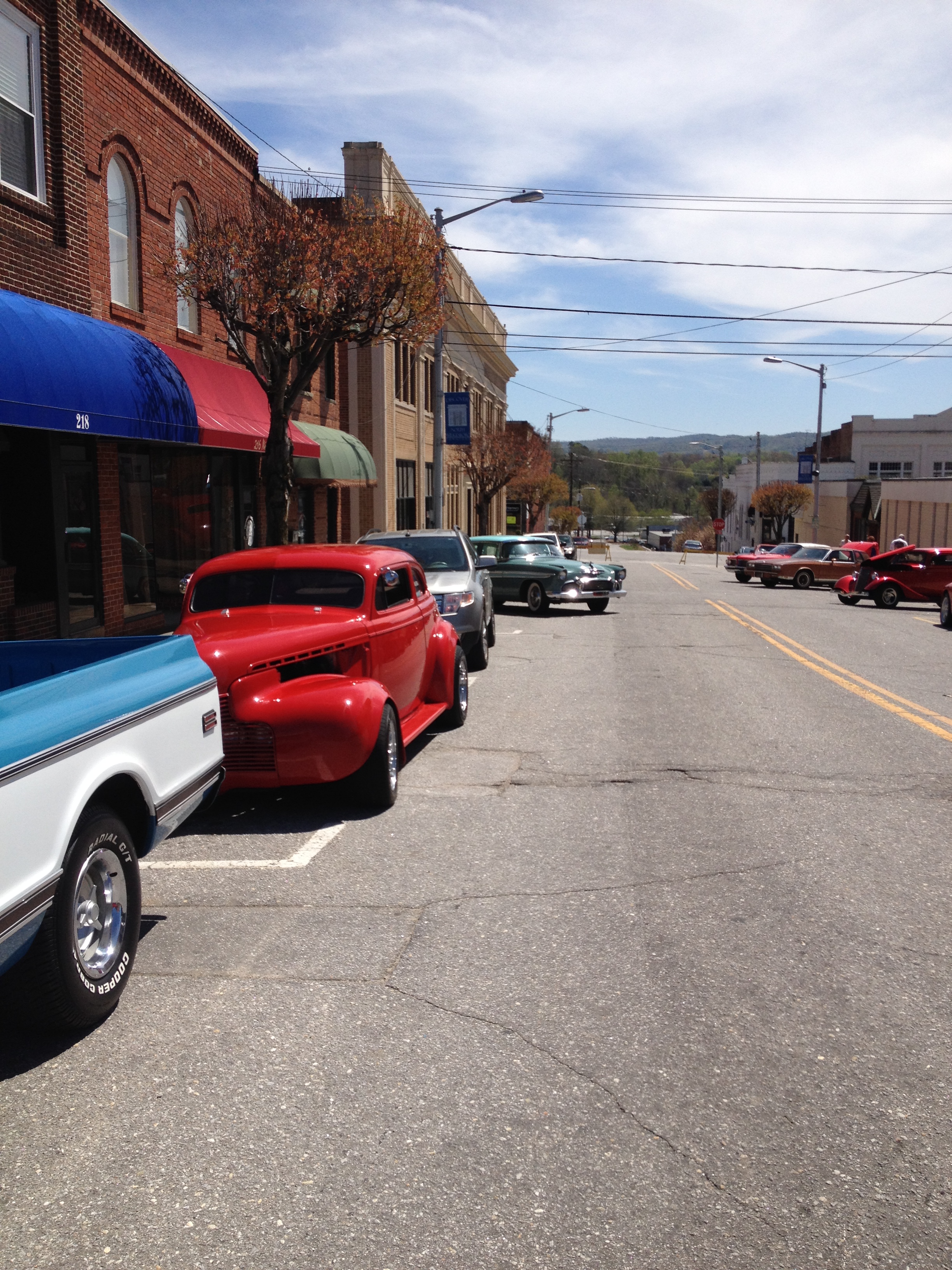 Downtown North Wilkesboro, North Carolina hosted the Wilkes Cruisers and their immaculately restored cars on the most beautiful day of the season. Sunny, warm, Carolina blue skies…a slice of heaven. So I took Gretel for her first car show!
