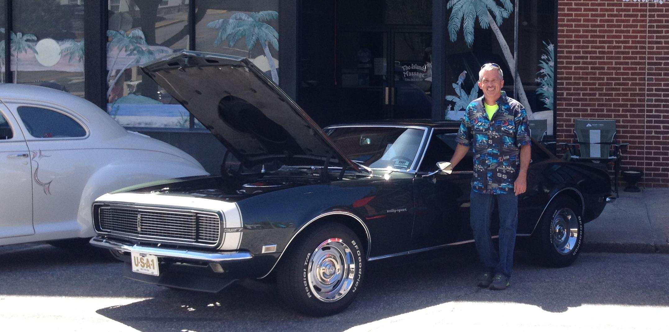 Perhaps that close call helped him decide to purchase this gem–a 1968 Camaro. (He told me what it was!) Looking good!