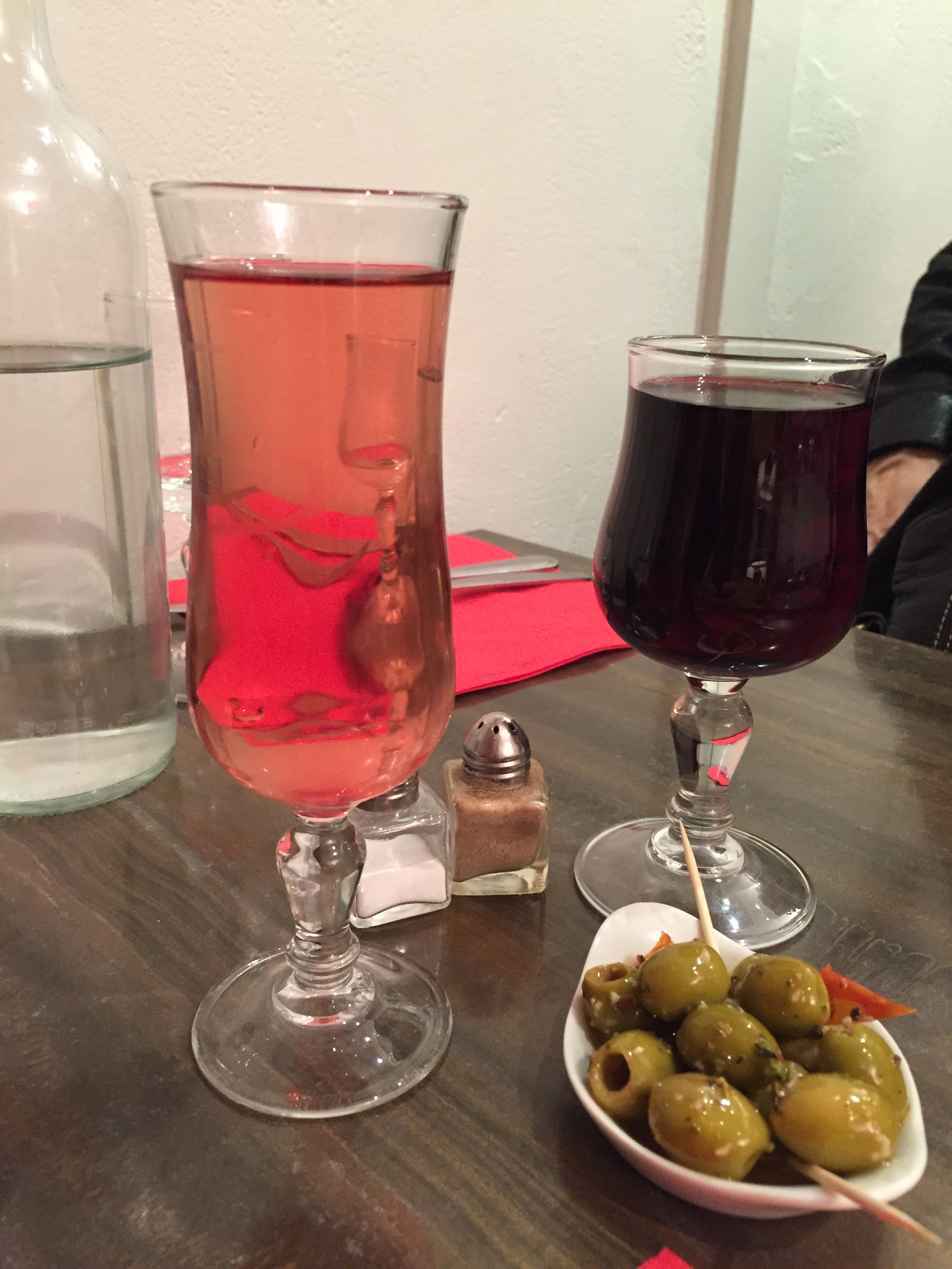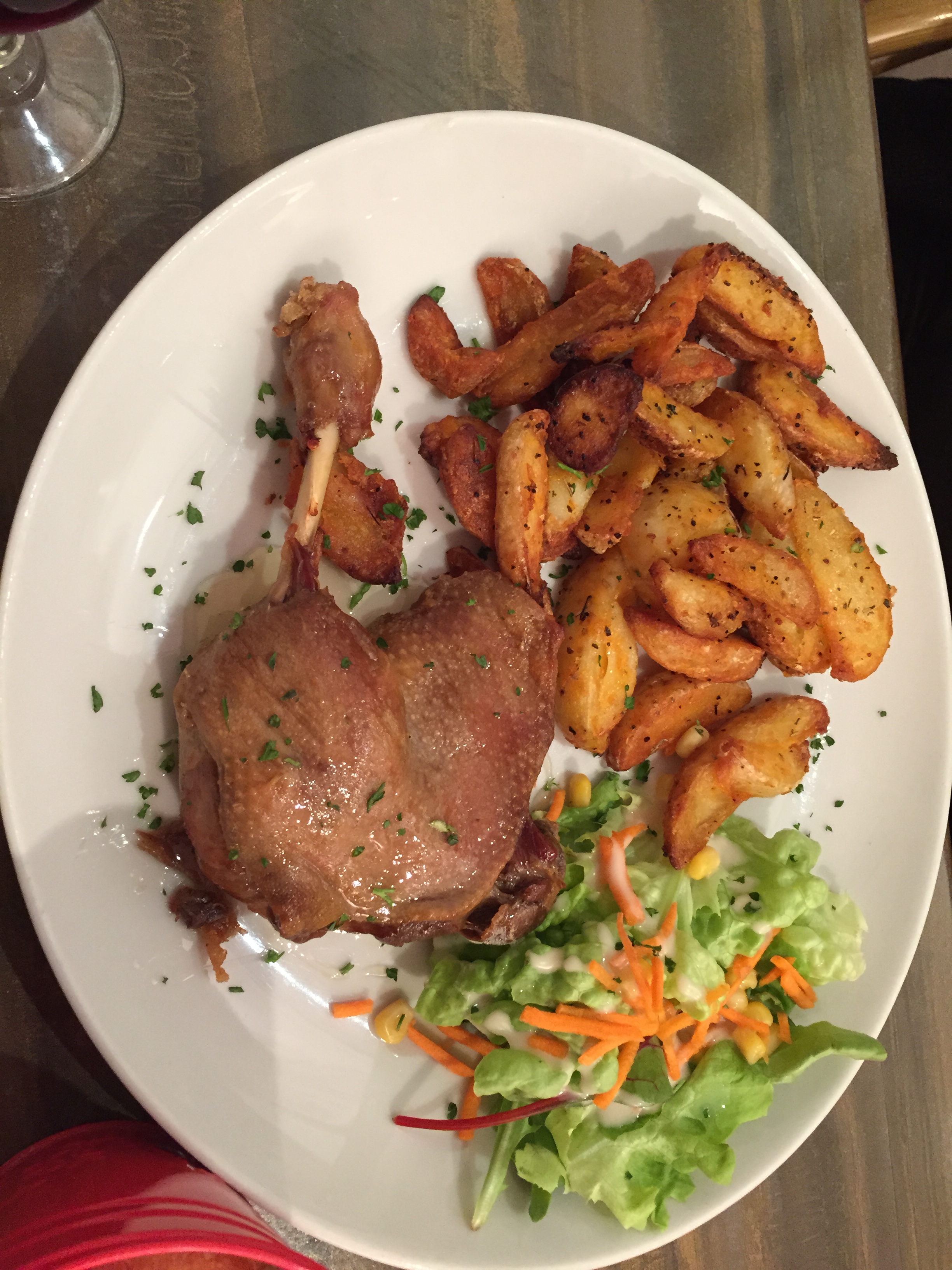 Kir, wine, olives, duck, roasted potatoes, tarts, desserts….oh my!