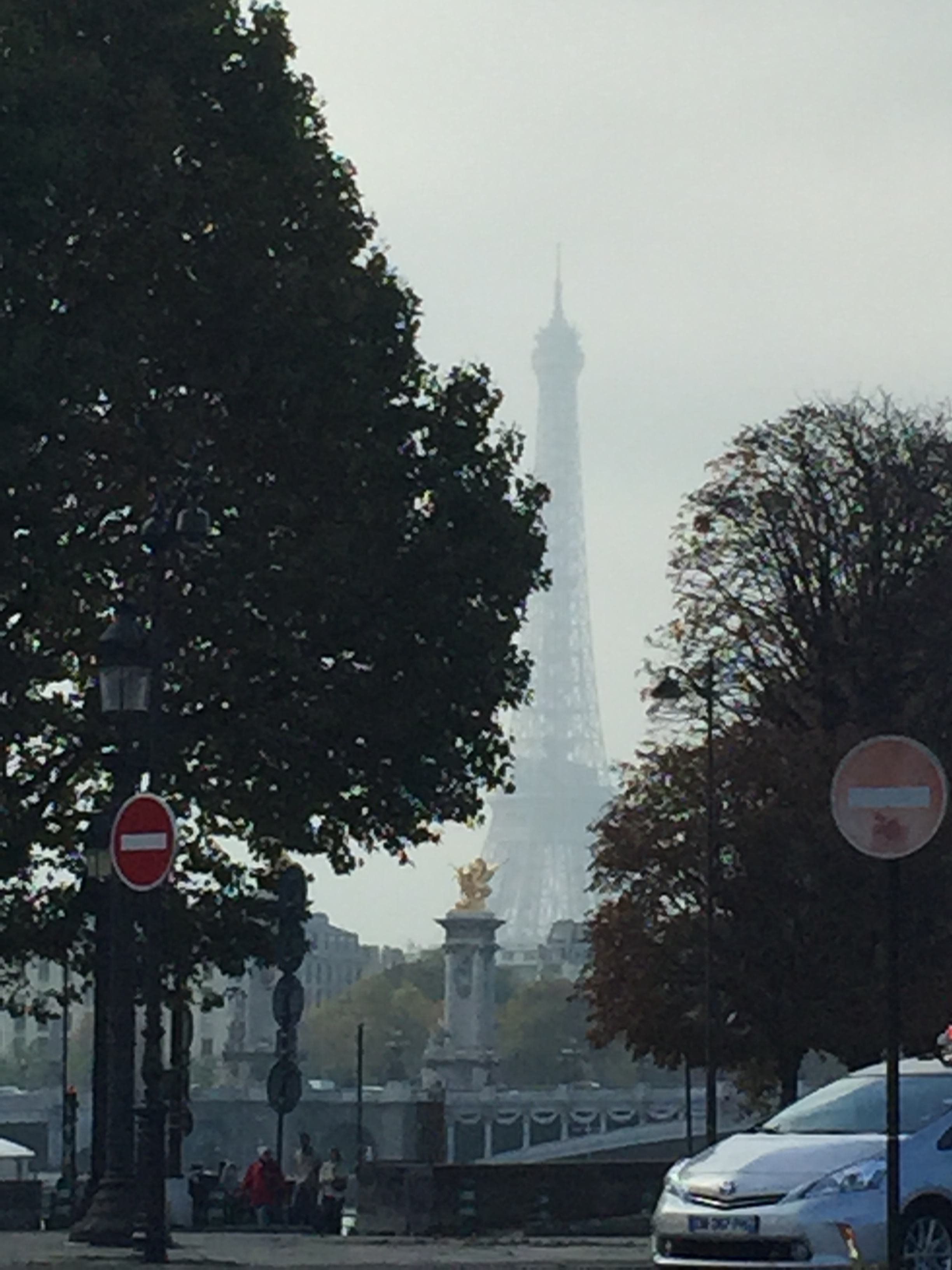Paris was still shrouded in mist when we left, the top of the Eiffel Tower often completely lost as if in clouds.