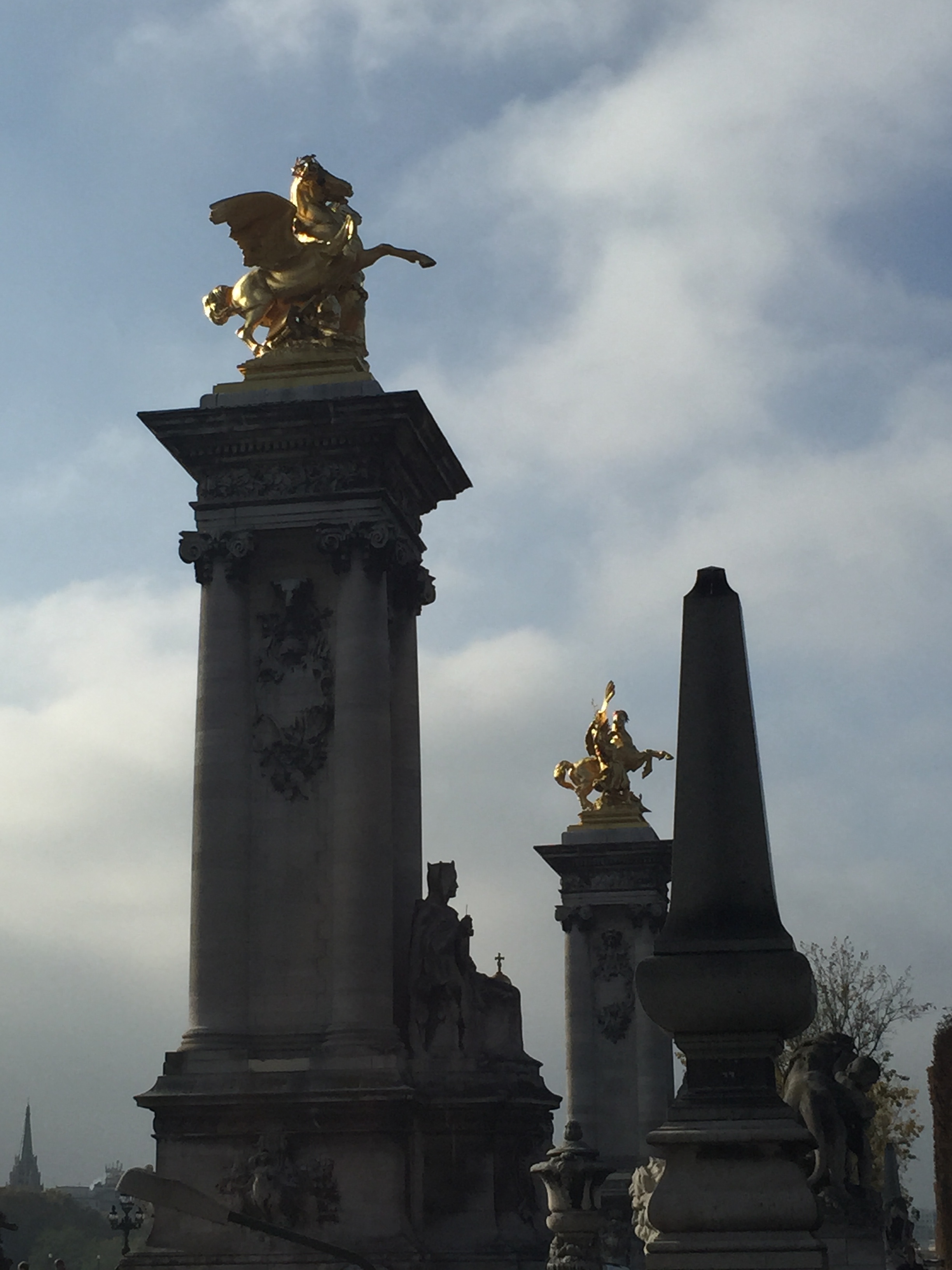 Notre Dame stood out in the distance from our position on Pont d’Alexandre, which we decided was our favorite bridge due to its lovely lamp lights, architecture, and sculpture.