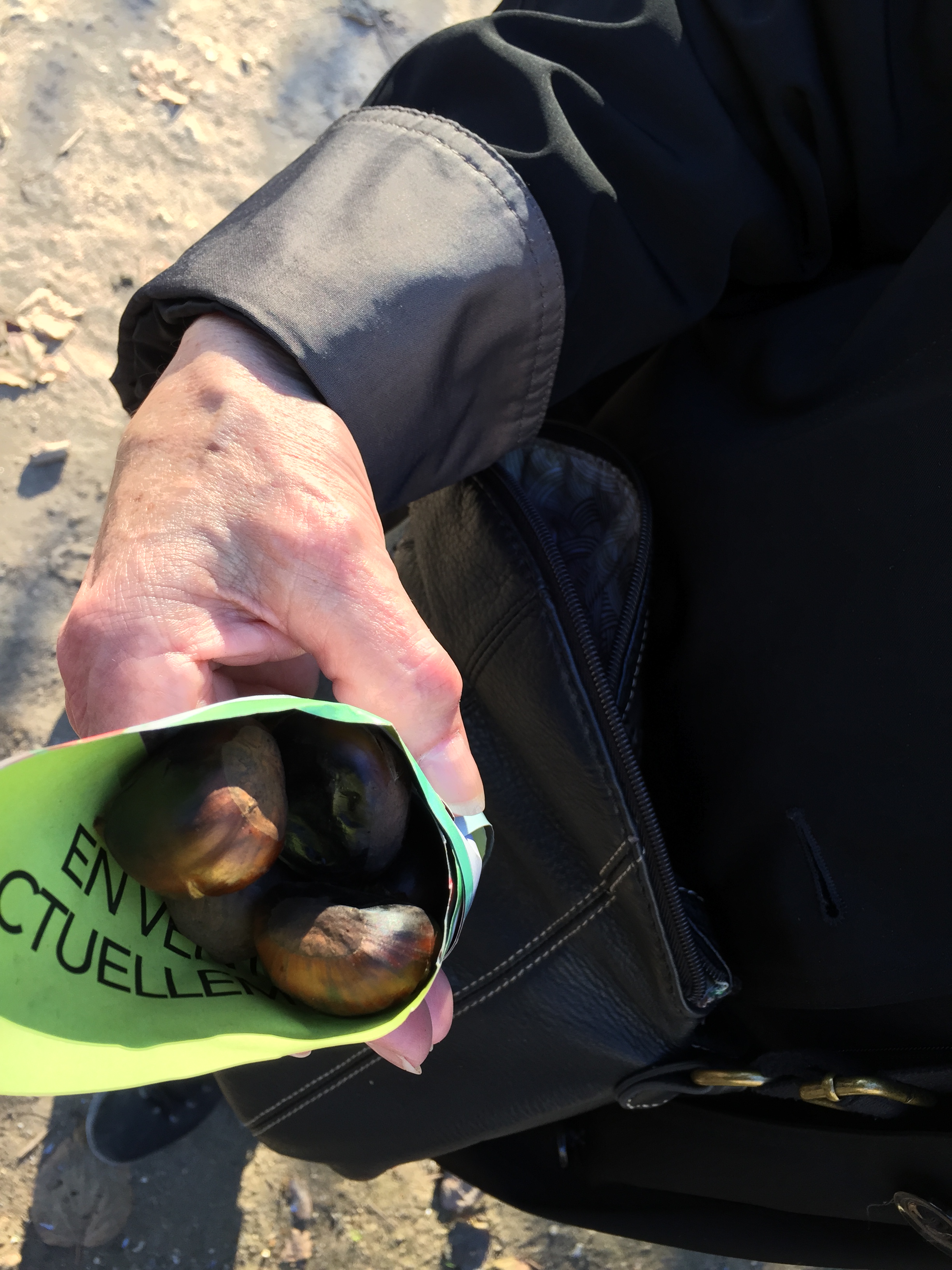 Moving on, we found a street vendor selling roasted chestnuts, another of the city’s treats. Served to us in a rolled paper cone, we nibbled their sweetness as we strolled toward the Eiffel Tower.