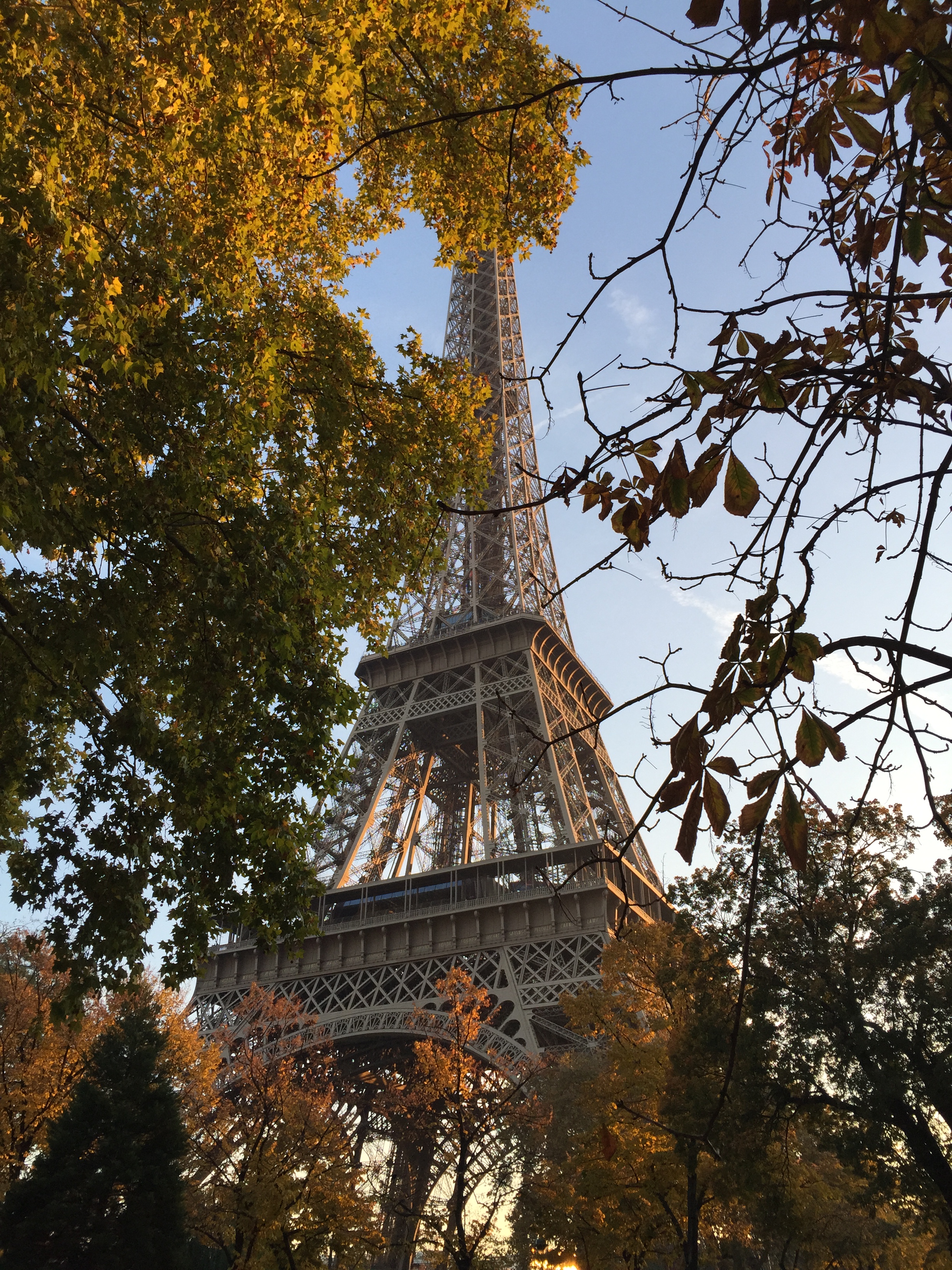 We found a bench and watched the mighty symbol of France as she peeked at us from behind colored leaves.