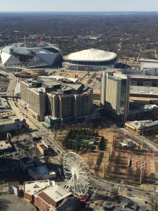 Spinning to revolve for a 360 degree view of Atlanta, it rises 72 stories above the street.